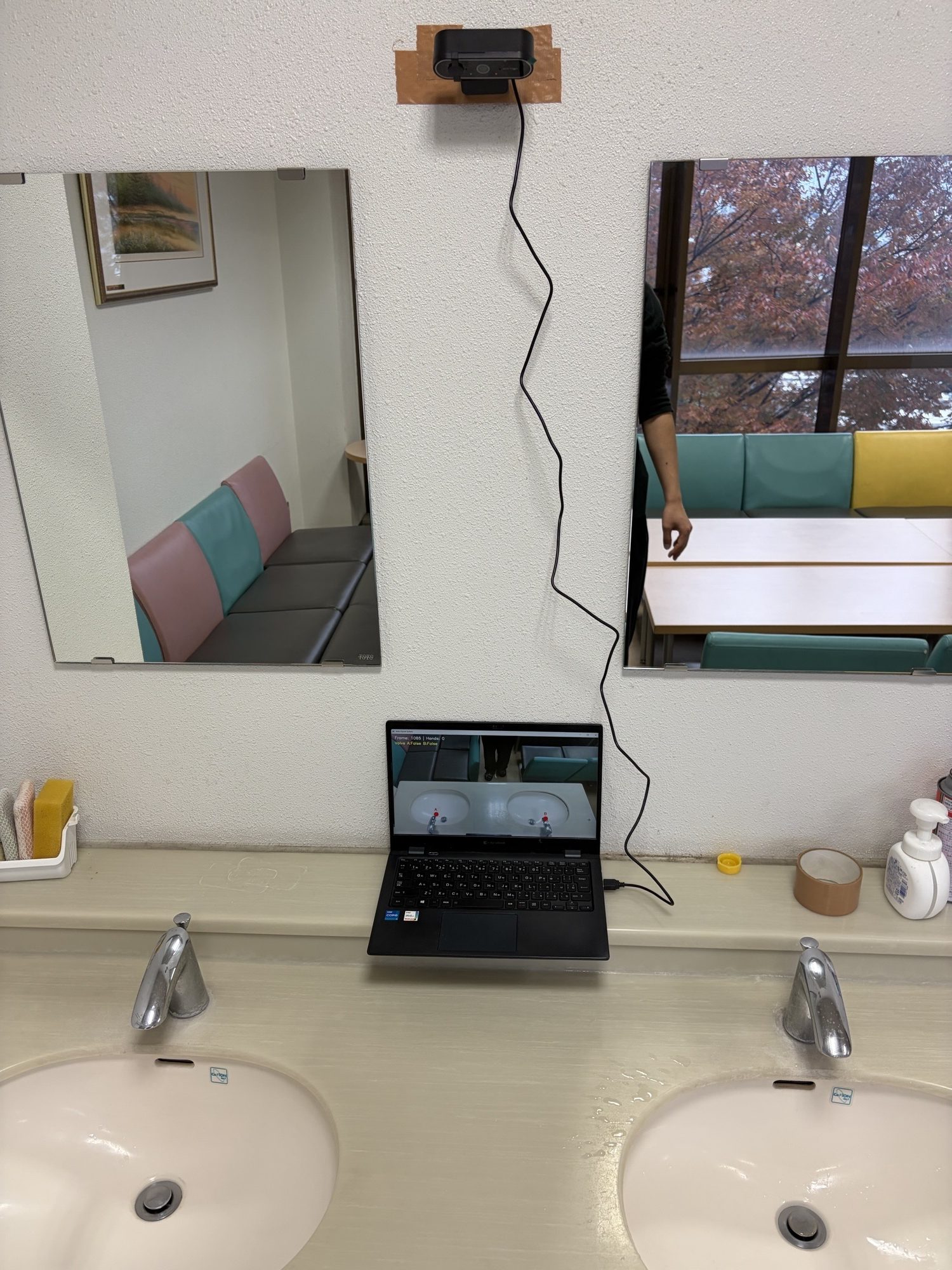 1度True(手が蛇口に近づき水を出す判定)が出た場合、3秒間Trueを維持するように変更 > 洗っている途中に判定が途切れて水が出なくなることがあったため